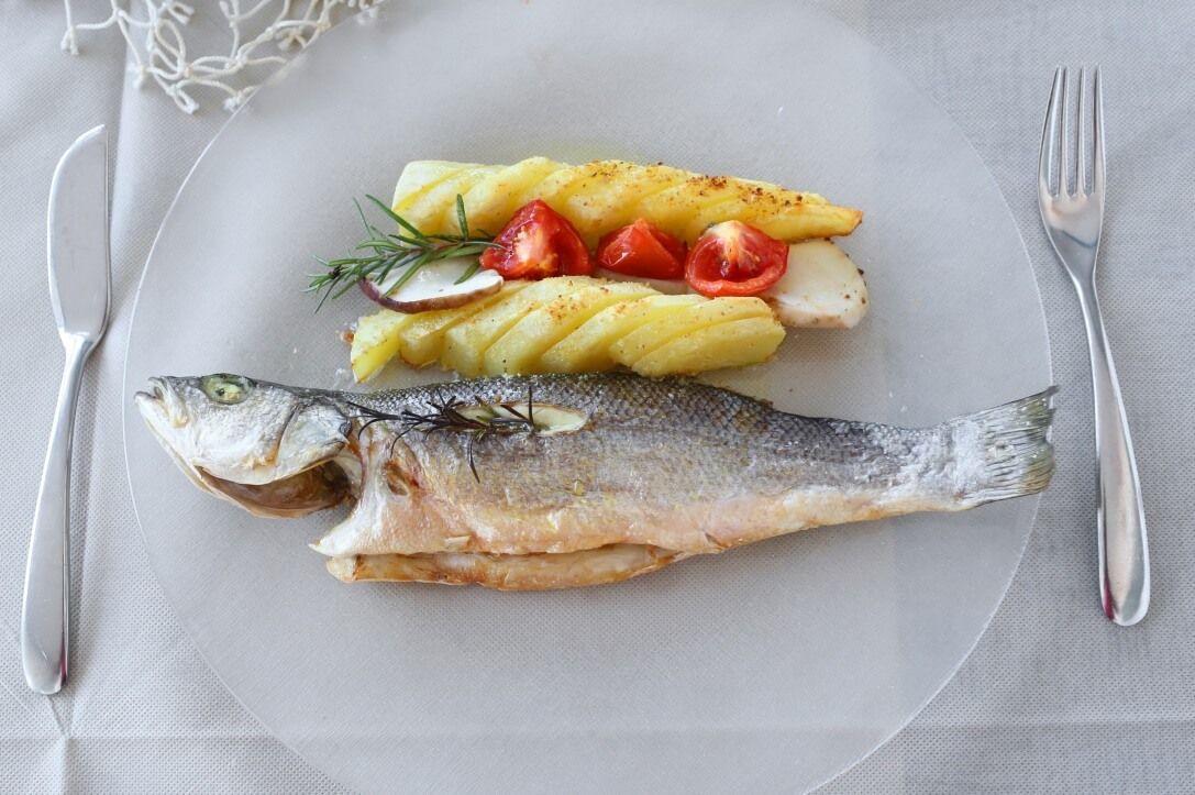 Spigola o Orata con patate e funghi porcini (porz. circa 400 gr.) |