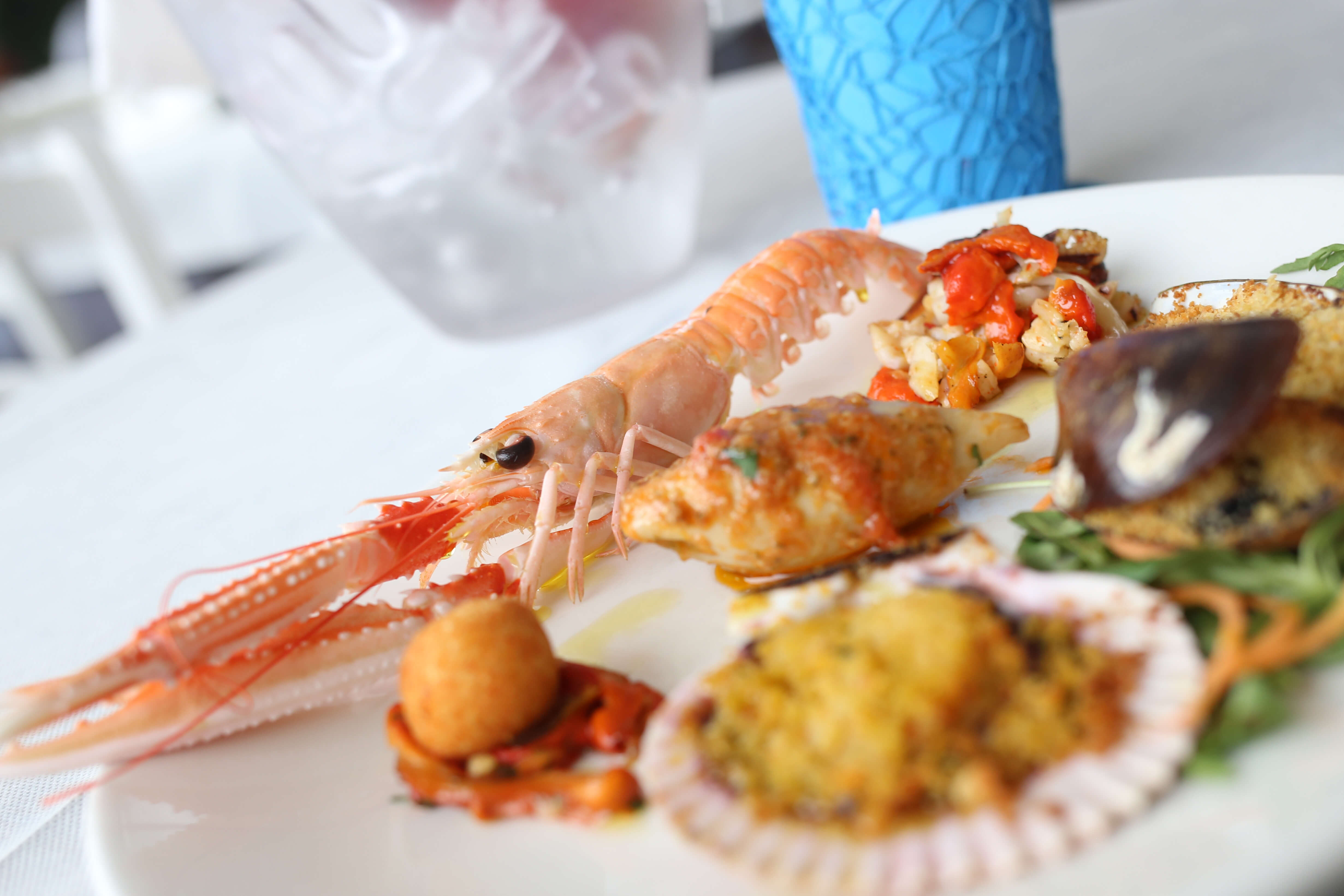 (Polpettina di Baccalà, Calamaro ripieno, Gratinati, Scampo lesso, Soute di cozze e vongole)