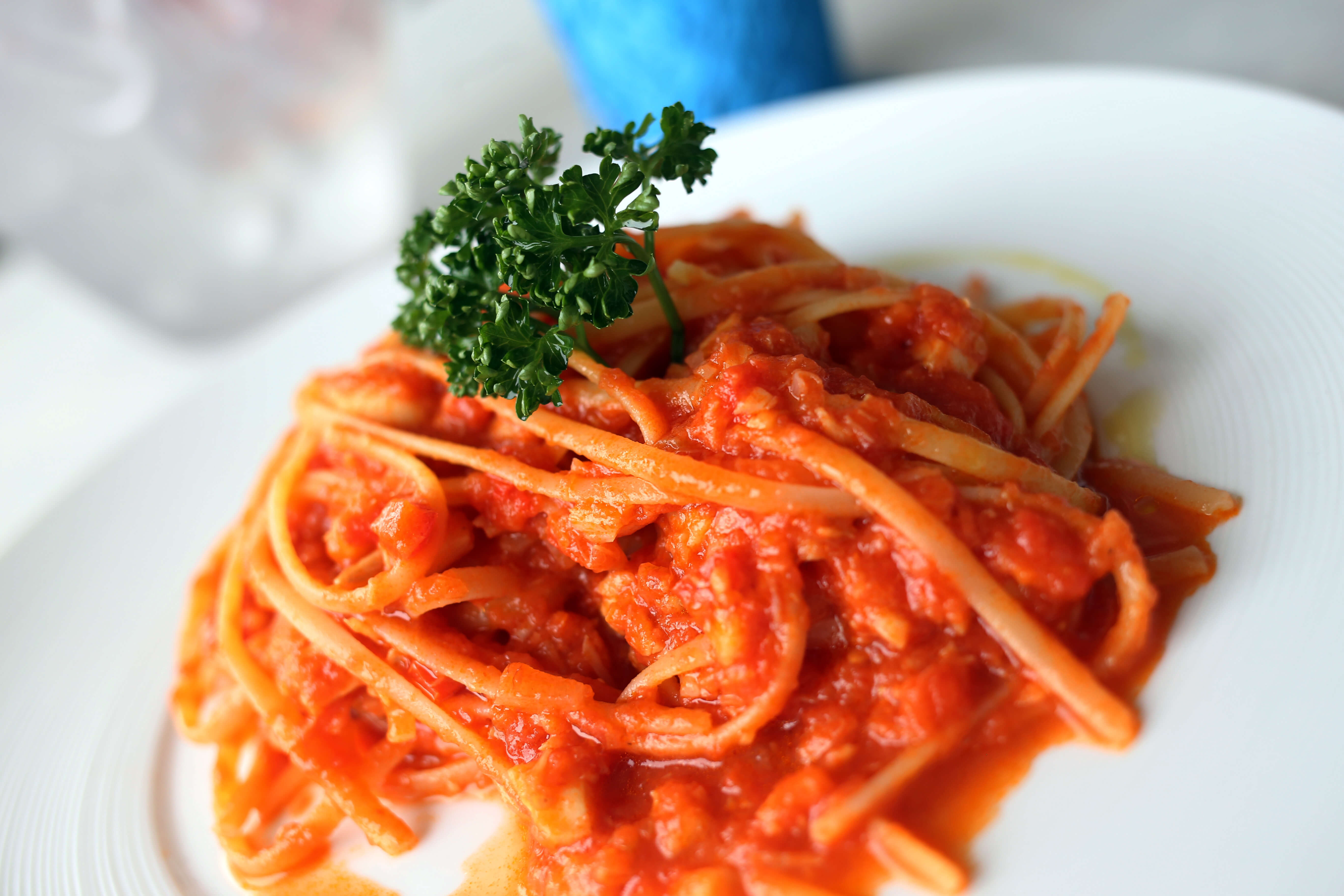 Calamarata agli Scampi Pasta condita con pomodorini e scampi |