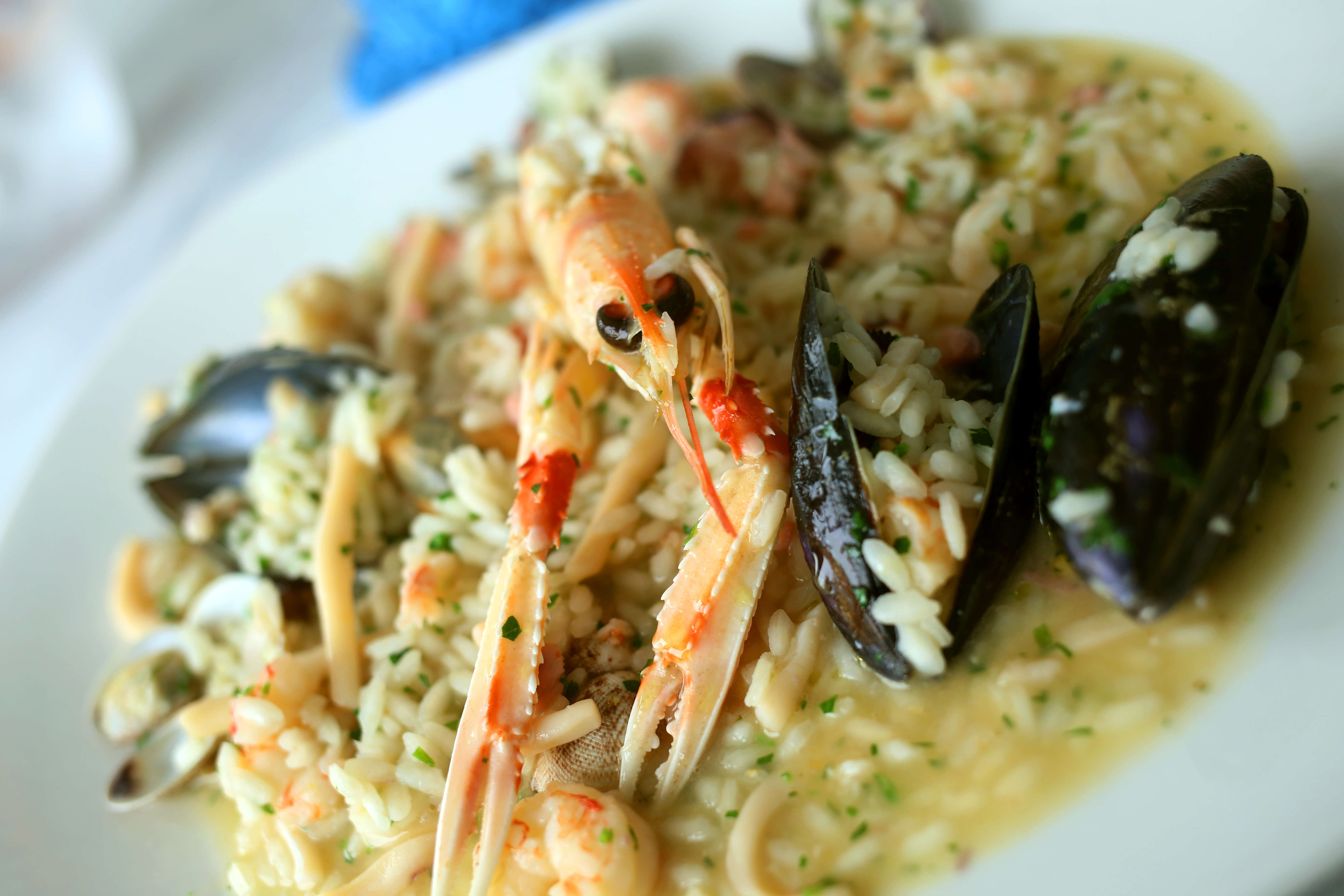 Risotto alla Marinara (minimo 2 porzioni) Risotto della tradizione abruzzese con frutti di mare, gamberi e seppie |